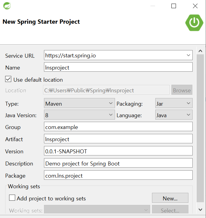 Type : maven (Gradle 이나 다른건 자기 마음)