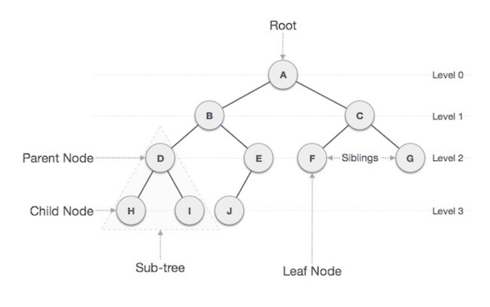 되게 간단하다. 단순 트리 구조는, 동료 노드와, 부모 자식 노드 그리고 최상단의 루트 노드가 존재한다는 것이 전부이다.