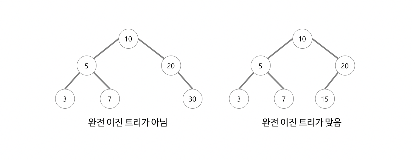 완전 이진 트리는 , 왼쪽에서 오른쪽으로 데이터가 채워진다는 것을 순서대로 잘 지켰냐, 지키지 않았냐 이다.
