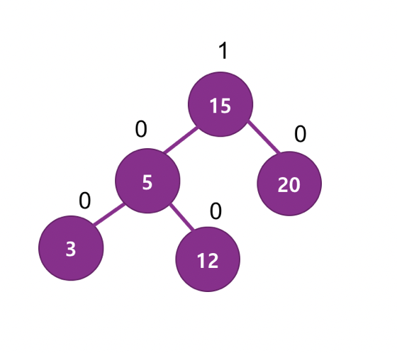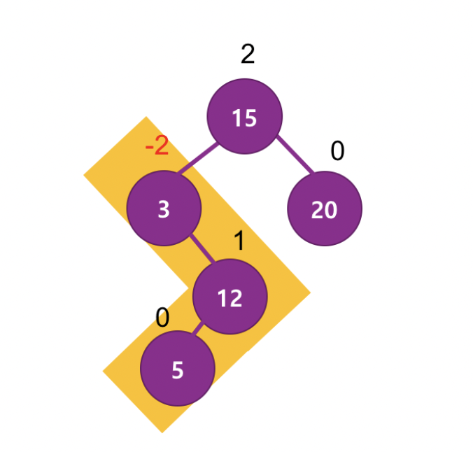 3, 12, 5를 가지고 정렬 및 3,5,12 로 다시 균형 잡힌 트리의 구조로 바꿔준다.