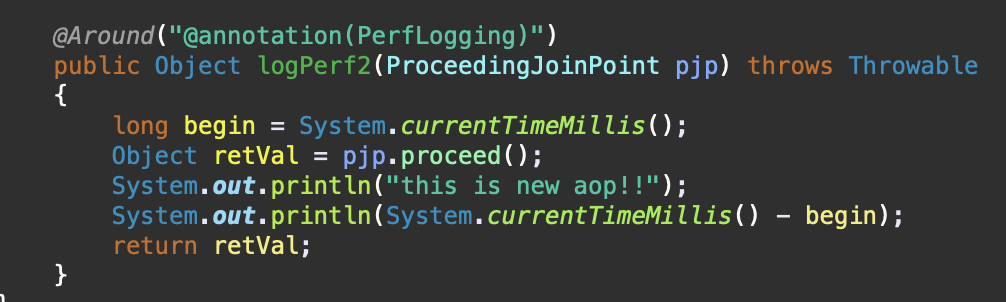 @Around 이외에, 다른 시점 즉 메소드 단위로 묶었을떄 다른 시점에서도 해당 aop가 동작하게끔 개발이 가능하다.
