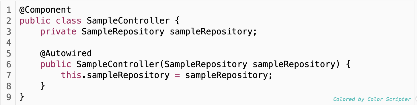 5. final을 사용하지 않아서, 주입하지 않고 사용하면 NullPointException발생이 가능하다.