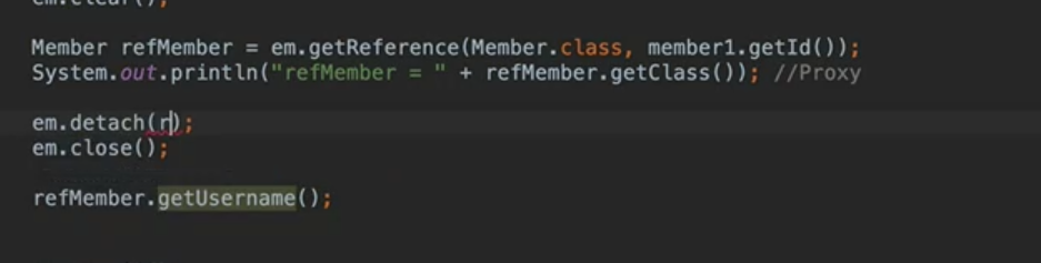 만약에 이렇게 , find가아니라, getReference로 불러올때는 사용하지않으면, select 쿼리, 즉 db에서 조회하지 않는다.