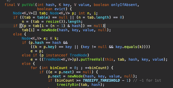 put을 사용하면, putVal이라는 함수에, key에 대한 Hash와 키, 밸류를 넣게 된다.