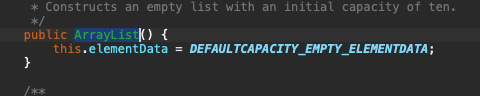 해당 생성자는 단순히, 자신의 elementData를 빈 상수로 선언해준다.