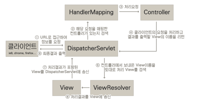 <클라이언트 요청 시 스프링 프레임워크 동작 과정>