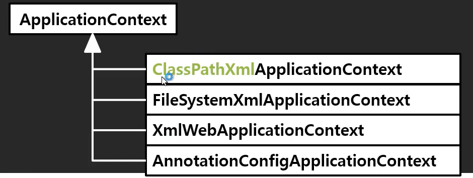 DI 관련 그리고 스프링 설정 관련, ApplicationContext 인터페이스를 구현한 구현체들이 여럿 있다
