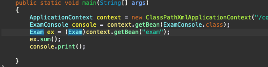 나는 LecsExam이라는 빈과, 해당 빈을 property로 set하는 examconsole을 생성했다.