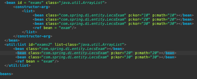 두가지 방법이 있다. 한가지는 빈과 생성자를 통해서 컬렉션 안의 타입 빈을 선언 하는 것이고