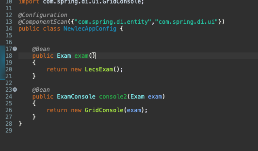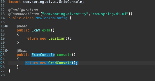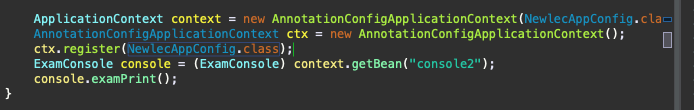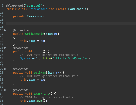 우선 config 파일을 바꿨다. 기본 생성자가 아닌, console에서는 exam이 필요하기 때문에 해당 autowired를 해주는 것으로 빈을 생성했고, 해당 GridConsole의 빈 아이디에 맞춰서 작성을 다시 했다.