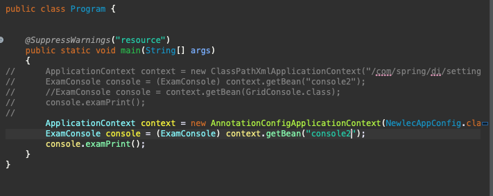 우선 config 파일을 바꿨다. 기본 생성자가 아닌, console에서는 exam이 필요하기 때문에 해당 autowired를 해주는 것으로 빈을 생성했고, 해당 GridConsole의 빈 아이디에 맞춰서 작성을 다시 했다.