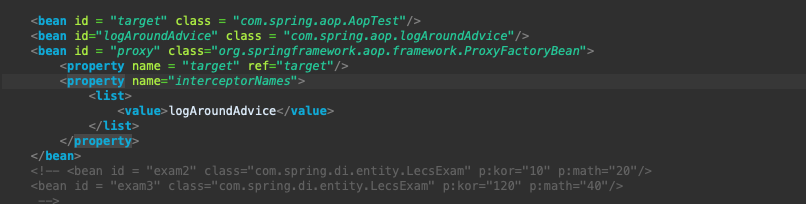 그리고 프록시 빈을 생성해서, 이 프록시에, 타겟 및 interceptorNames에 해당 인터셉터를 꽂아주면,