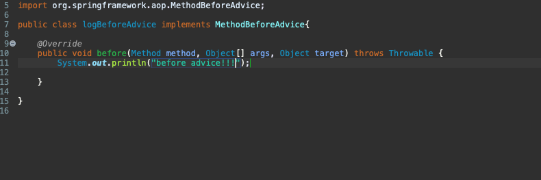 참고로 beforeAdvice는, MethodBeforeAdvice를 구현한다.