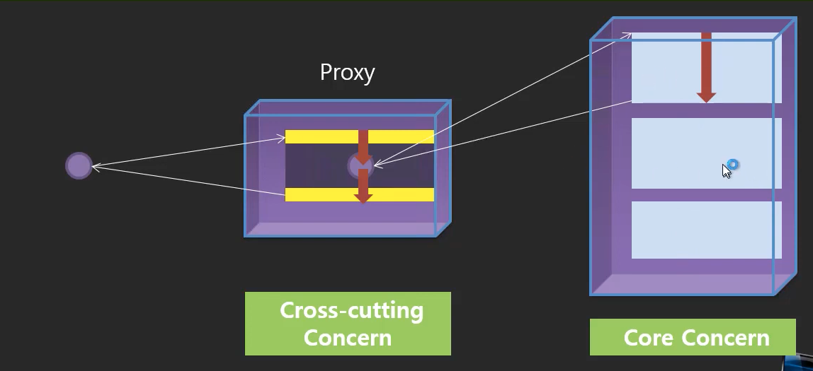 weaving : 위빙은 뜨개질하다라는 의미이기도 하다, 실제로 메소드나 특정 클래스가 호출될때 프록시를 통하게 되는데