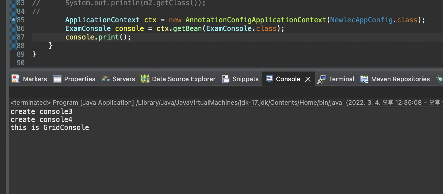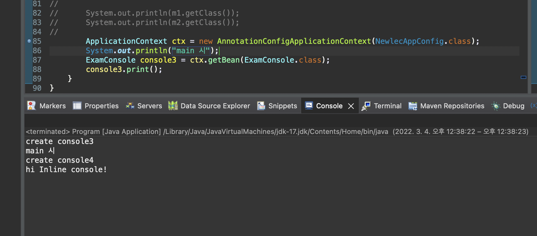 또한 해당 config에서 생성될때, 생성된다는 sysout을 하면 이렇다.