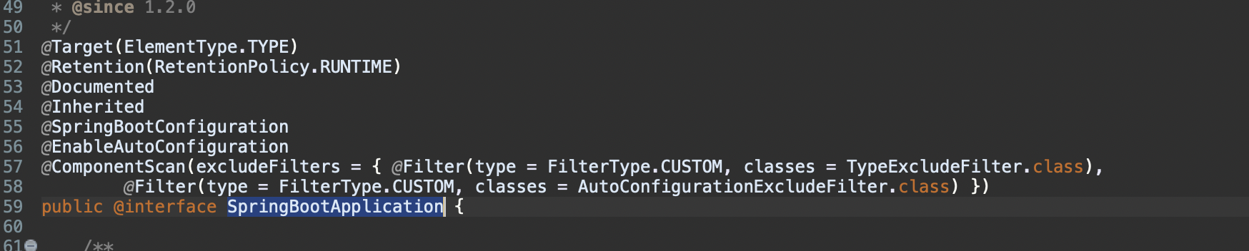 스프링 부트 시작 클래스에 붙어있는 어노테이션 해당 어노테이션에는