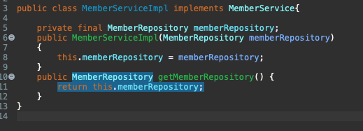 각 Service들은 생성자에서 MemberRepository를 주입받는다.