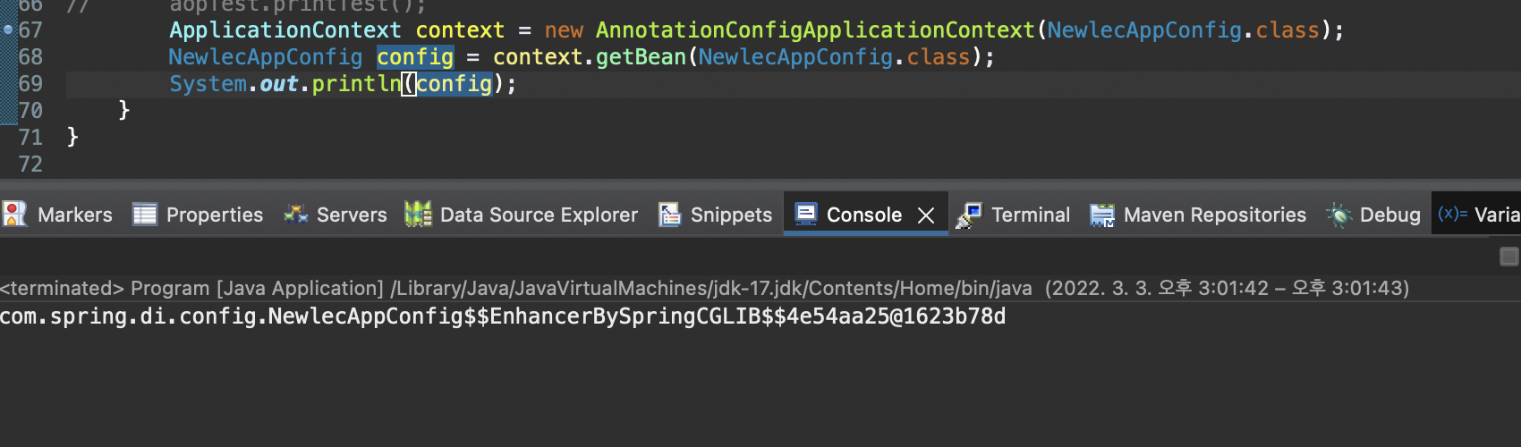 해당 config를 불러와서, 프린트하면, CGLIB라는 객체로 된 것을 볼수있다.