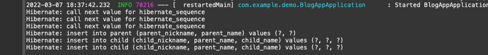 동일 소스 여도, 영속성 전이가 되어서 insert가 3개 다 나가는 것을 볼수있다.