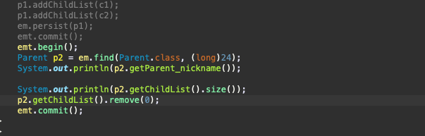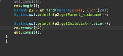 해당 같이, 제거를 하면, delete 쿼리가 remove 시점에 발생한다.