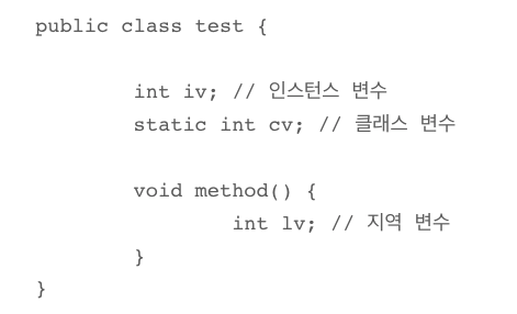 - 클래스 이외의 영역에 선언이 되고, 변수 선언문이 실행되었을때 생성이 된다.