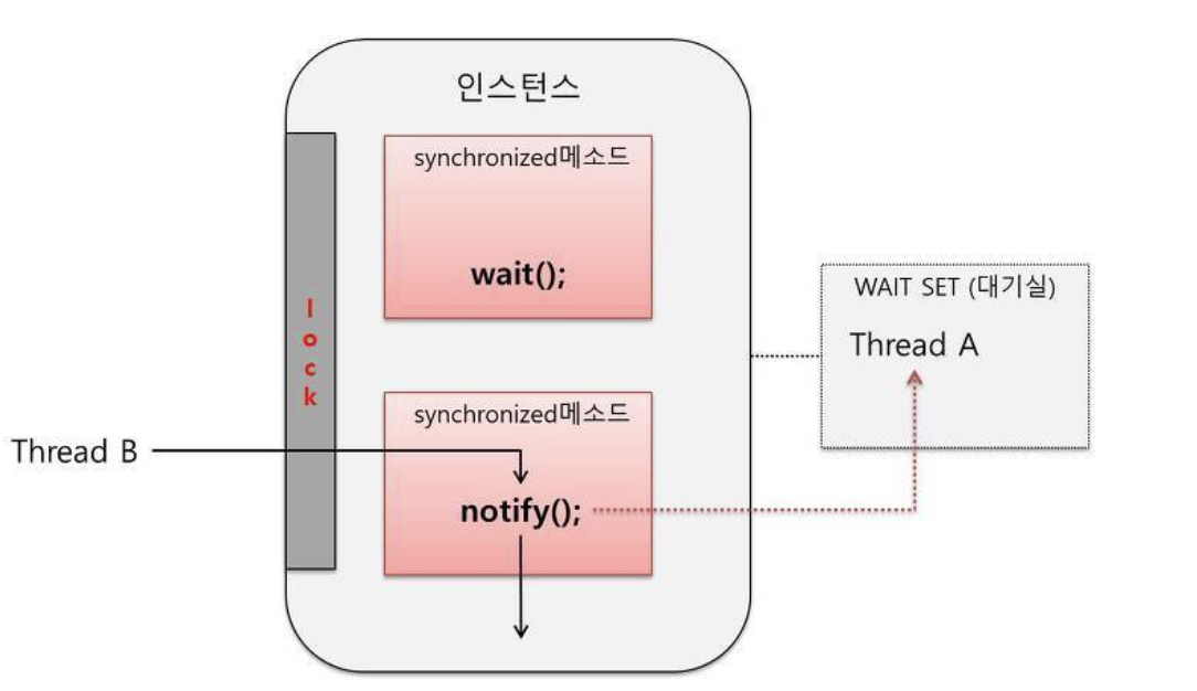 nofity는, wait_set에 있는 임의의 한개의 쓰레드를 Runnable상태로 변경하고,