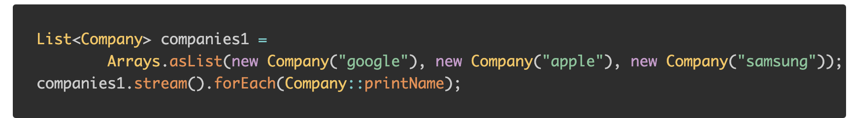 메소드 레퍼런스로 표현하는 것은 Company::printName 같이 표현하는 것이다.