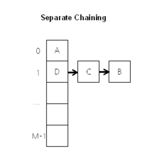 해시충돌 발생시, 다음 노드로 해당 값을 저장한다.