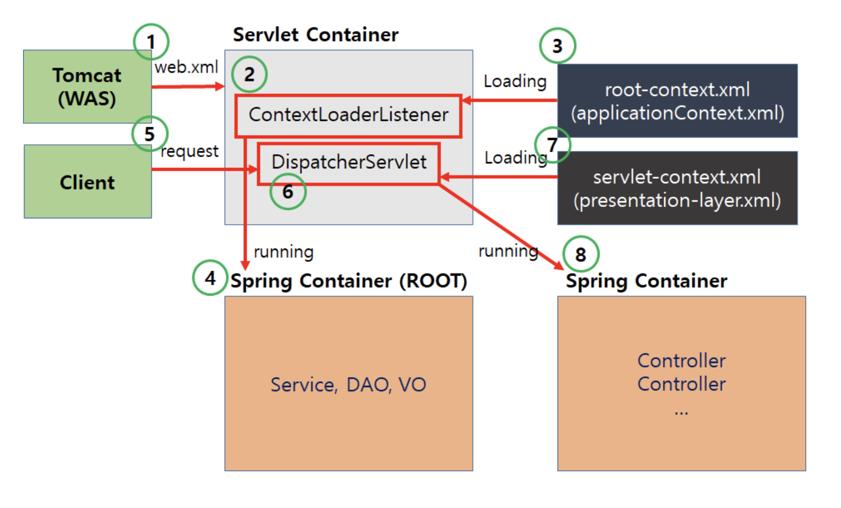 4.root-context에 등록되어있는 설정에 따라 Spring container가 구동