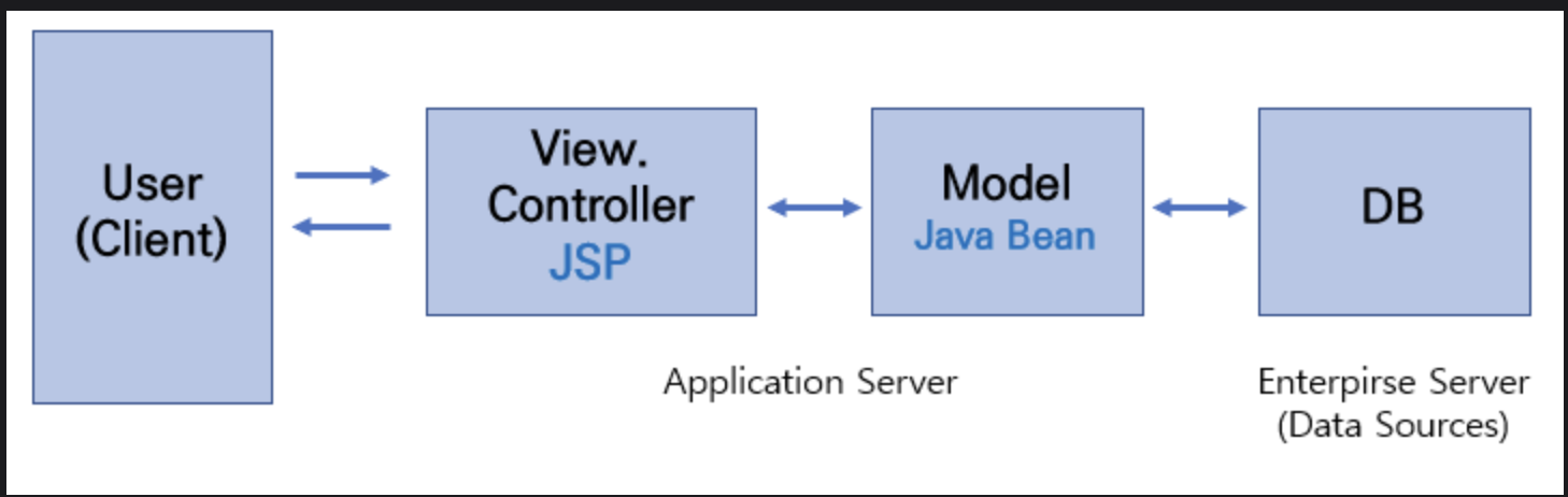 MVC1은, JSP에서 view와 controller의 로직을 모두 담당한다.