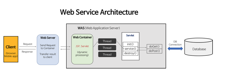 -WAS는 web.xml을 참조하여 해당 Servlet에 대한 Thread를 생성한다. (Thread Pool 이용)