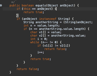 추가로, String class에서는 이 equals에 대한 오버라이드를 하고있는데,