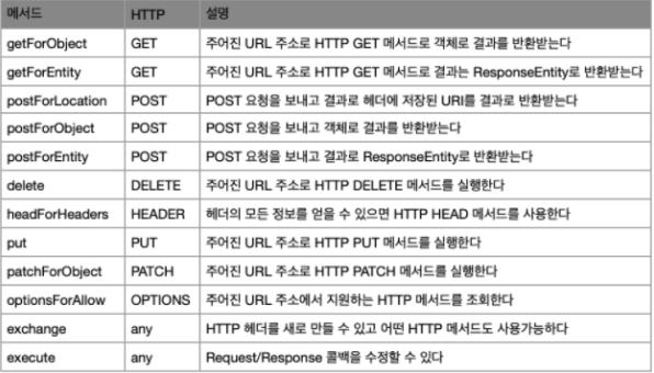Rest 서비스를 호출하도록 설계되어 HTTP 프로토콜 메서드에 맞게 여러 메서드를 제공한다.