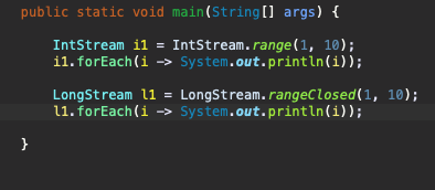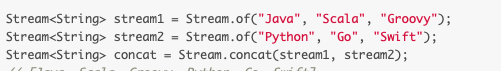 - Stream.builder() / Stream.generate() / Stream.iterate()