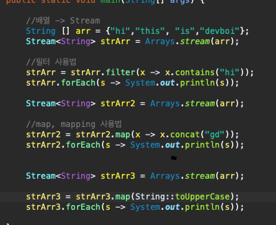 2차원 배열이나, 더 복잡한 배열에 대해서 Stream 처리를 해주는 flatmap도 존재한다.
