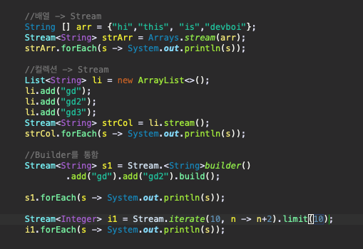 - 배열 / 컬렉션 / 빈 스트림