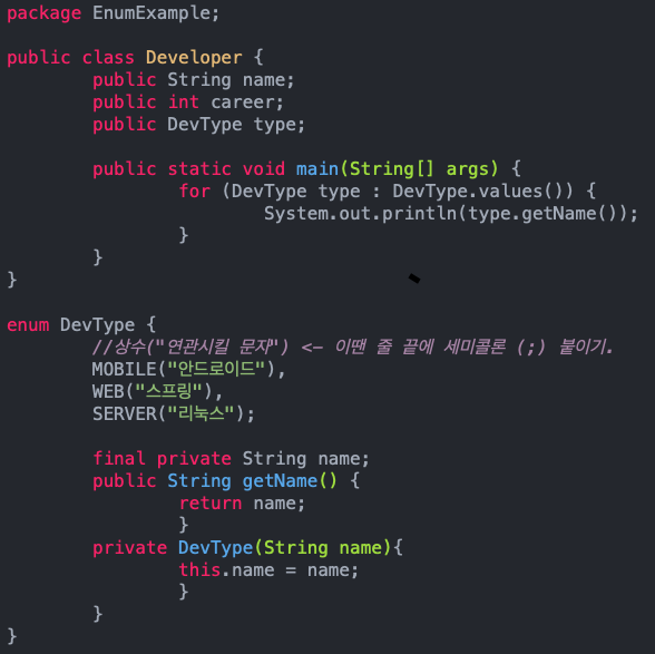 메인에서는 각 상수 타입별로, 할당된 값을 가지고 사용하면 되기 떄문에,