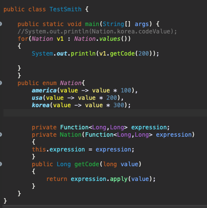 또한 Enum은, 각 함수메서드를 인자로받아서, 계산해 줄 수도있다.