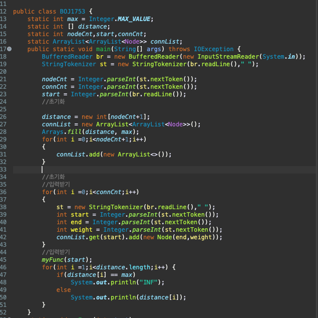 Algorithm/[Etc] [최단거리] BOJ1753 CALLMESMITHMYNAME 2022. 4. 9. 00:03 반응형 https://www.acmicpc.net/problem/1753 1753번: 최단경로 첫째 줄에 정점의 개수 V와 간선의 개수 E가 주어진다. (1 ≤ V ≤ 20,000, 1 ≤ E ≤ 300,000) 모든 정점에는 1부터 V까지 번호가 매겨져 있다고 가정한다. 둘째 줄에는 시작 정점의 번호 K(1 ≤ K ≤ V)가 www.acmicpc.net 반응형 공유하기 게시글 관리 CallMeSmith 'Algorithm > [Etc]' 카테고리의 다른 글 BOJ1238 (0) 2022.04.19 BOJ1753 (0) 2022.04.19 [카운팅 정렬과 퀵정렬] (0) 2021.10.21 선택 정렬 (0) 2021.09.28 버블 정렬 (0) 2021.09.28 'Algorithm/[Etc]' Related Articles BOJ1238 BOJ1753 [카운팅 정렬과 퀵정렬] 선택 정렬