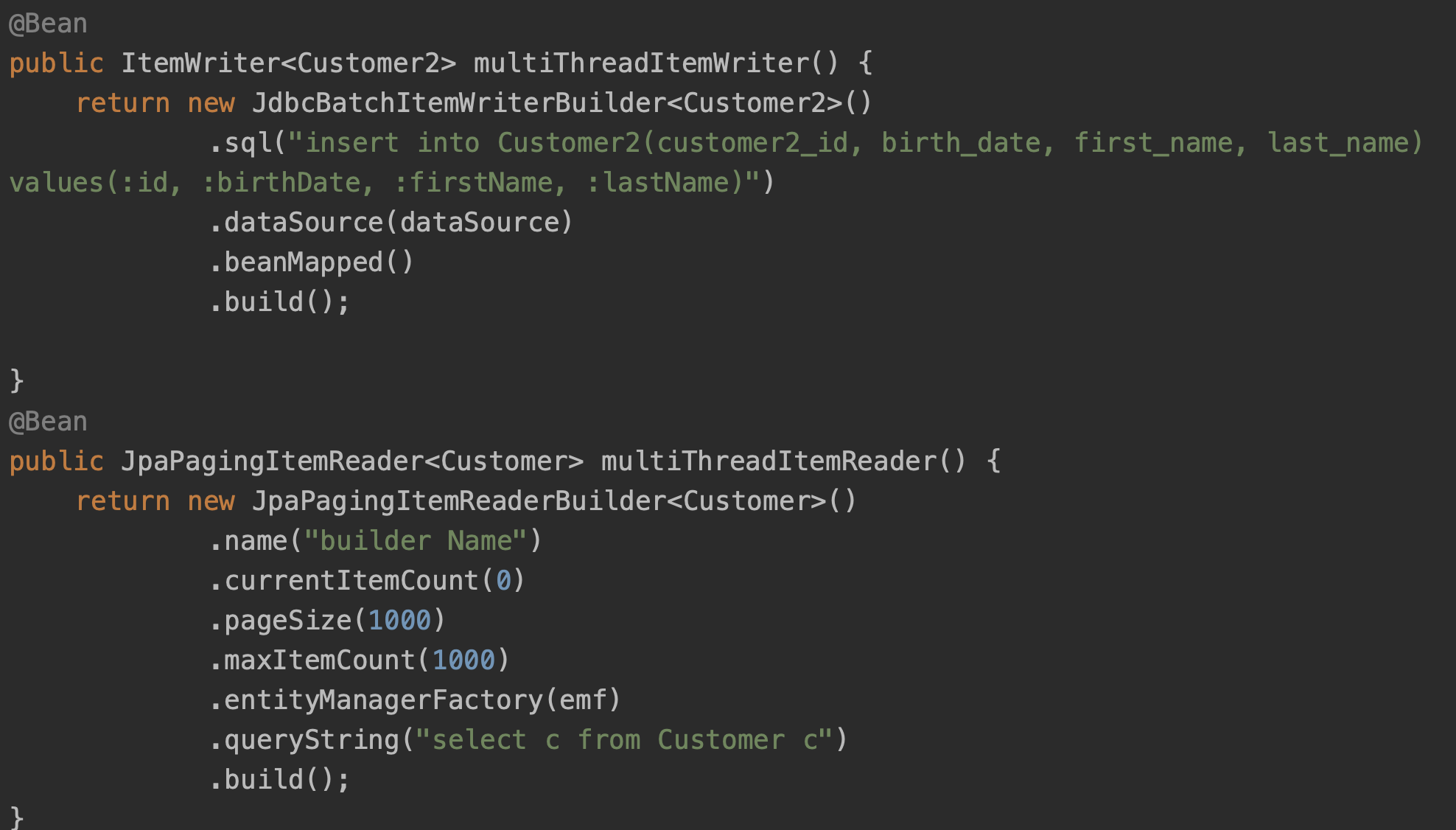 Reader는 동기화 처리를 신경써야하는데, 해당 부분때문에 JpaPagingItemReaderBuilder를 사용한다.