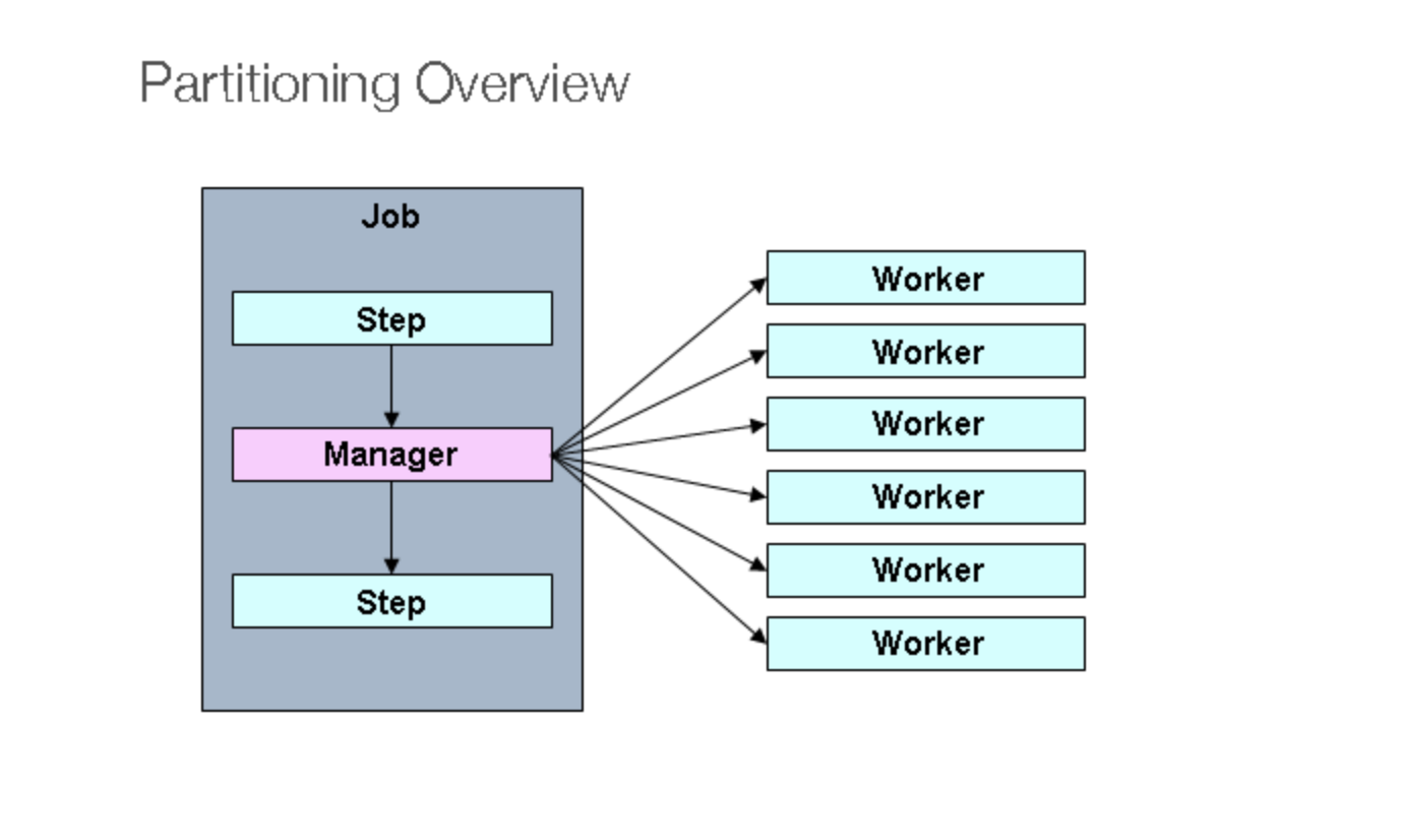 파티셔닝은 Marster Step이 해당 Step을 여러개의 Worker로 분할하여, 처리하게끔 하는 차이가 있다.