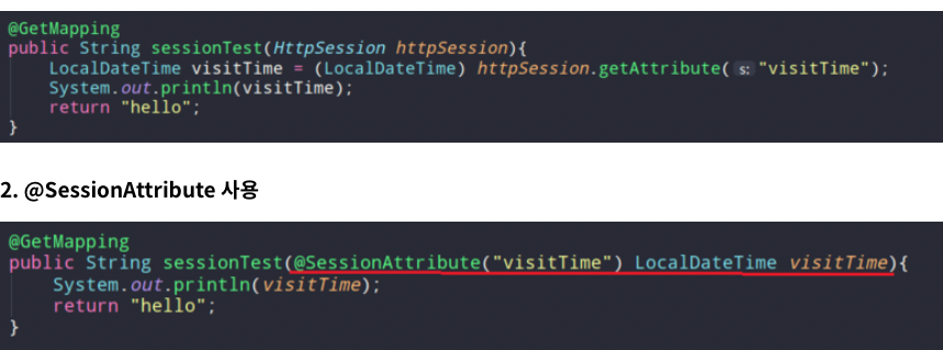 해당 HttpSession보다 더 추상화된 방법으로 사용되는 것이 SessionAttribute이다.