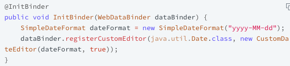해당 InitBidner를 사용하게 되면, Date객체에 대한 요청이 들어오게 되면, CustomEdit을 하여 데이터를 고르게 가공할 수 있다.