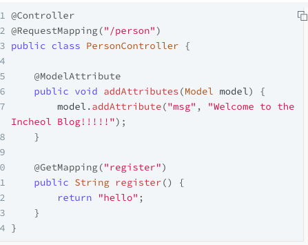 2. Controller 내에서 공통으로 사용할 모델을 정의할 수 있으며, View에 전달할 모델을 자동설정 해준다.