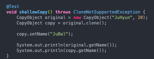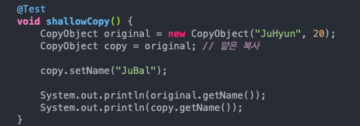 얕은 복사 (주소값을 공유)