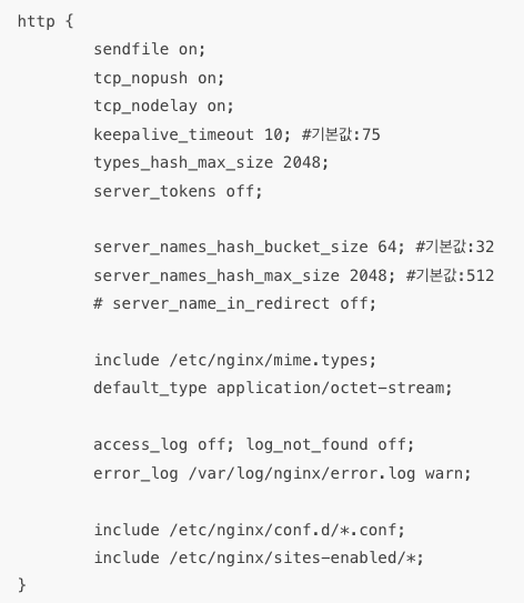 Nginx는 가상호스트 설정이나 반복되는 옵션항목을 include를 통해 불러올수 있다.