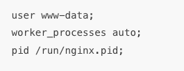 user는, NGINX프로세스가 실행되는 권한, worker_processess는 Nginx프로세스 실행 가능 수