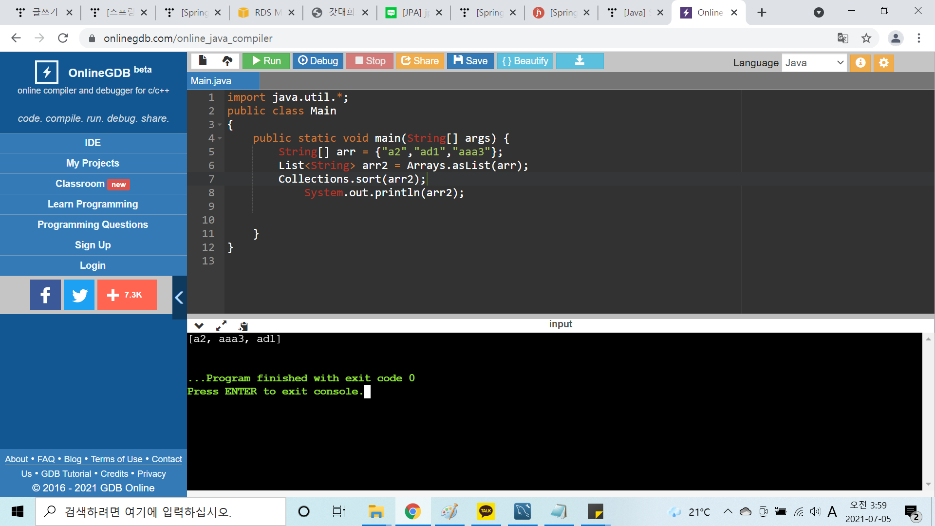 정렬을 한다고하면, 이렇게 Collections.sort를 써야한다.
