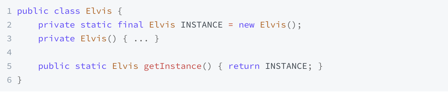 enum 선언직렬화 역직렬화, 리플렉션에 대한 공격으로 싱글턴 인스턴스 외 생성될 인스턴스 방어를 신경쓰지 않아도된다.사용법은 간결하고, 인스턴스가 추가로 생성될 가능성을 차단시킨다.