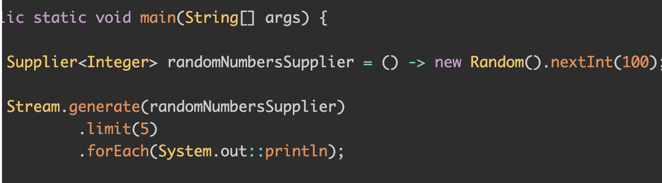 사용 이유 1. Stream의 generate, 해당 api를 쓰게되면, Supplier를 인자로 받아 무한한 스트림을 생성한다.